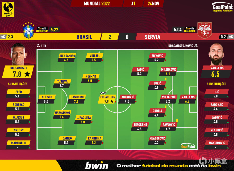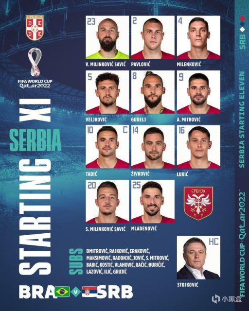 巴西首發身價5.29億,塞爾維亞也高達1.67億,多集中在鋒線,隊內身價最高的前鋒弗拉霍維奇替補,富勒姆身價2800萬的米特洛維奇擔任首發前鋒,塞爾維亞主打3412陣容,主教練爲執教中超球隊多年的德拉甘斯托伊科維奇!