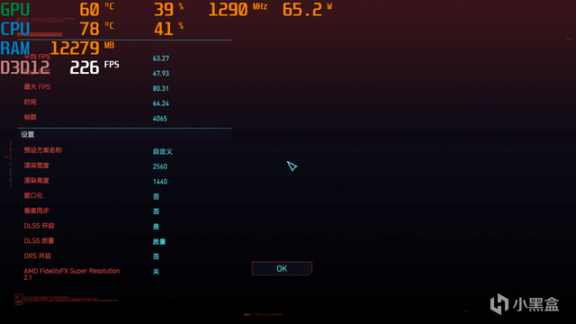 2K 預設高畫質+開啓DLSS質量,平均63.27幀。