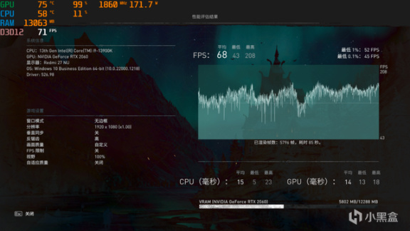 1080P 預設最高畫質(體積雲:中),平均68幀。