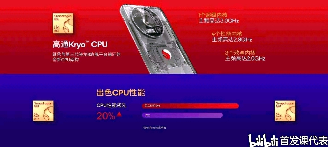 ——高通官方表示 骁龙8sGen3,GeekBench 6 多核跑分,领先 天玑8300约20%。