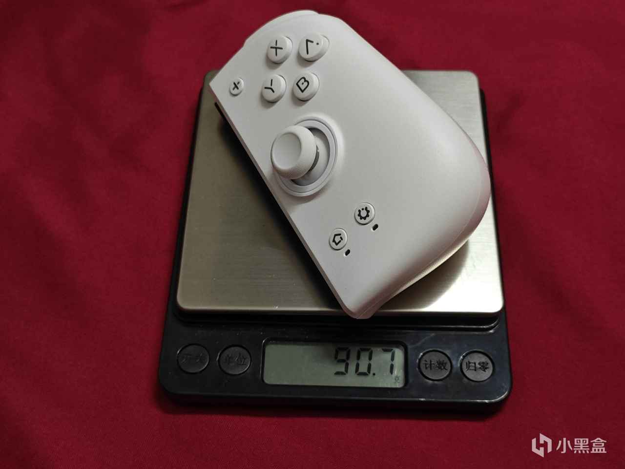 单手柄的实测重量为90.7g,这个重量控制得还是非常不错的。