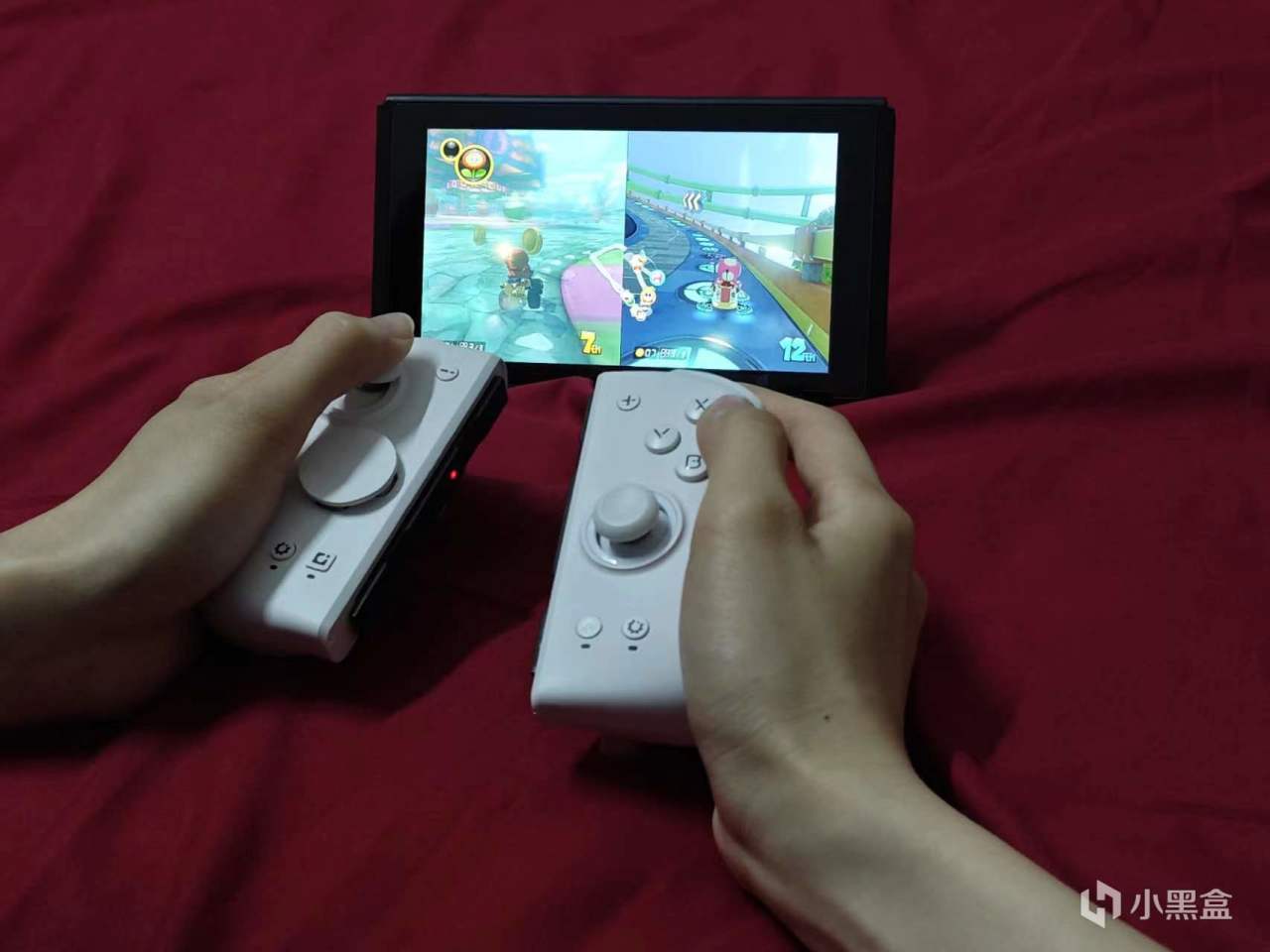 手柄还有两个八角POM环的磁吸替换外壳,装上去之后玩一些平台跳跃游戏非常有帮助,比如星之卡比,能够更加精准地控制方面。并且HD线性马达的加入,使得游玩一些游戏的代入感极强,譬如马里奥赛车跟喷射战士,震动的细腻程度与原装手柄无异。手柄还支持六轴体感,对于一些需要体感的游戏,譬如有氧拳击,在适配性方面也是完全没问题的。