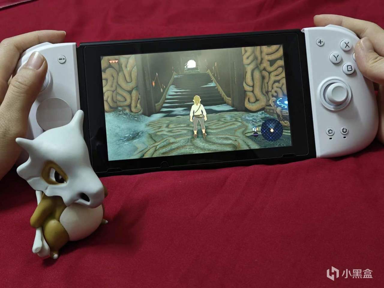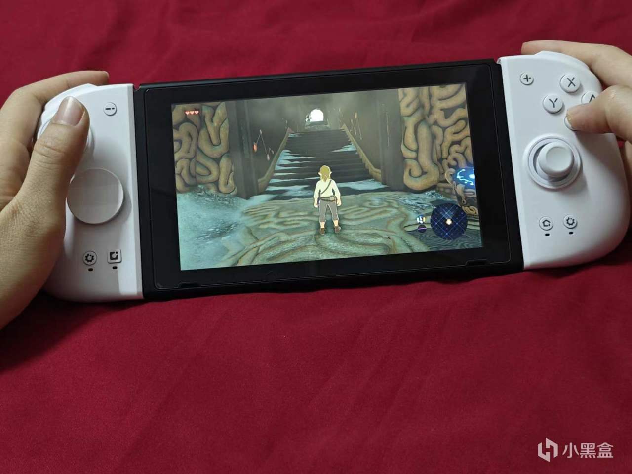 手柄在实际游玩游戏的过程中也是带给我足够多的惊喜。初上手的印象特别不错。手柄的背面是大弧度带防滑的,握持下去手指刚刚好能够搭着,握持手感十分优秀,即便长时间的握持也不容易累。我拿到手柄之后也是迫不及待开了玩了很长时间的游戏,游戏体验来说比起原装joy-con手柄有过之而无不及!手柄的动作键按键清脆软弹,反馈及时,非常跟手。而这些特点在动作类游戏,如塞尔达的体验中无疑是绝佳的!