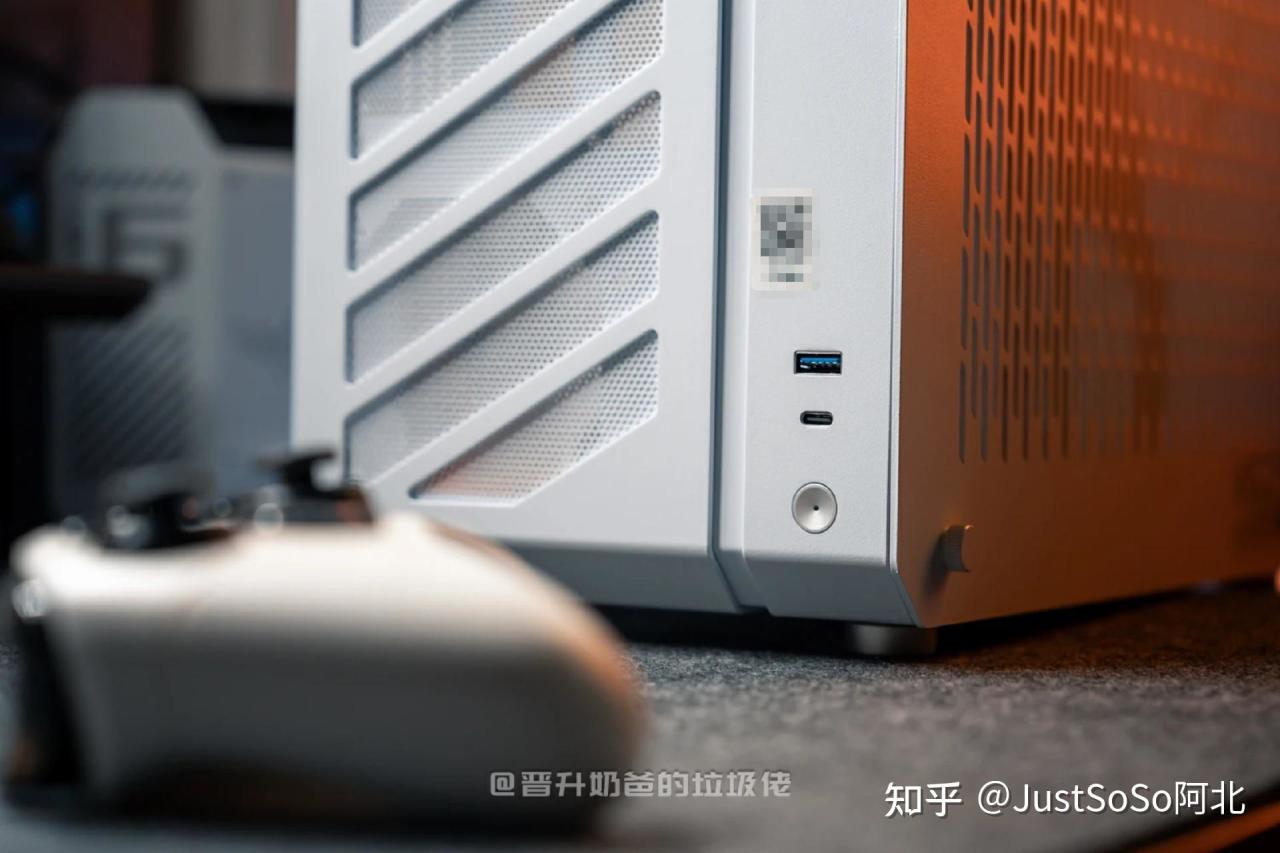 ▼前置接口上給到了1只USB-A與1只Type-C接口,銀色的圓形電源按鍵毫無違和感。