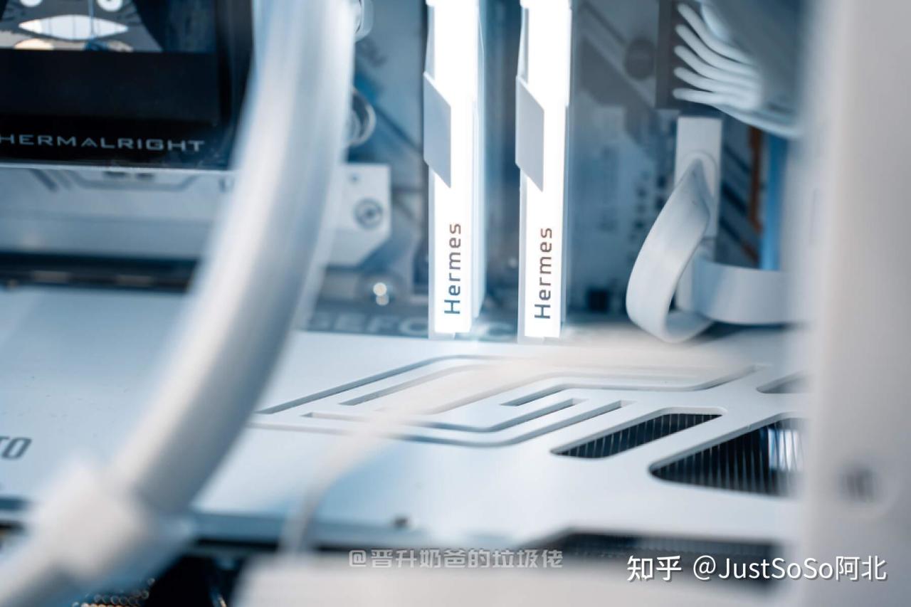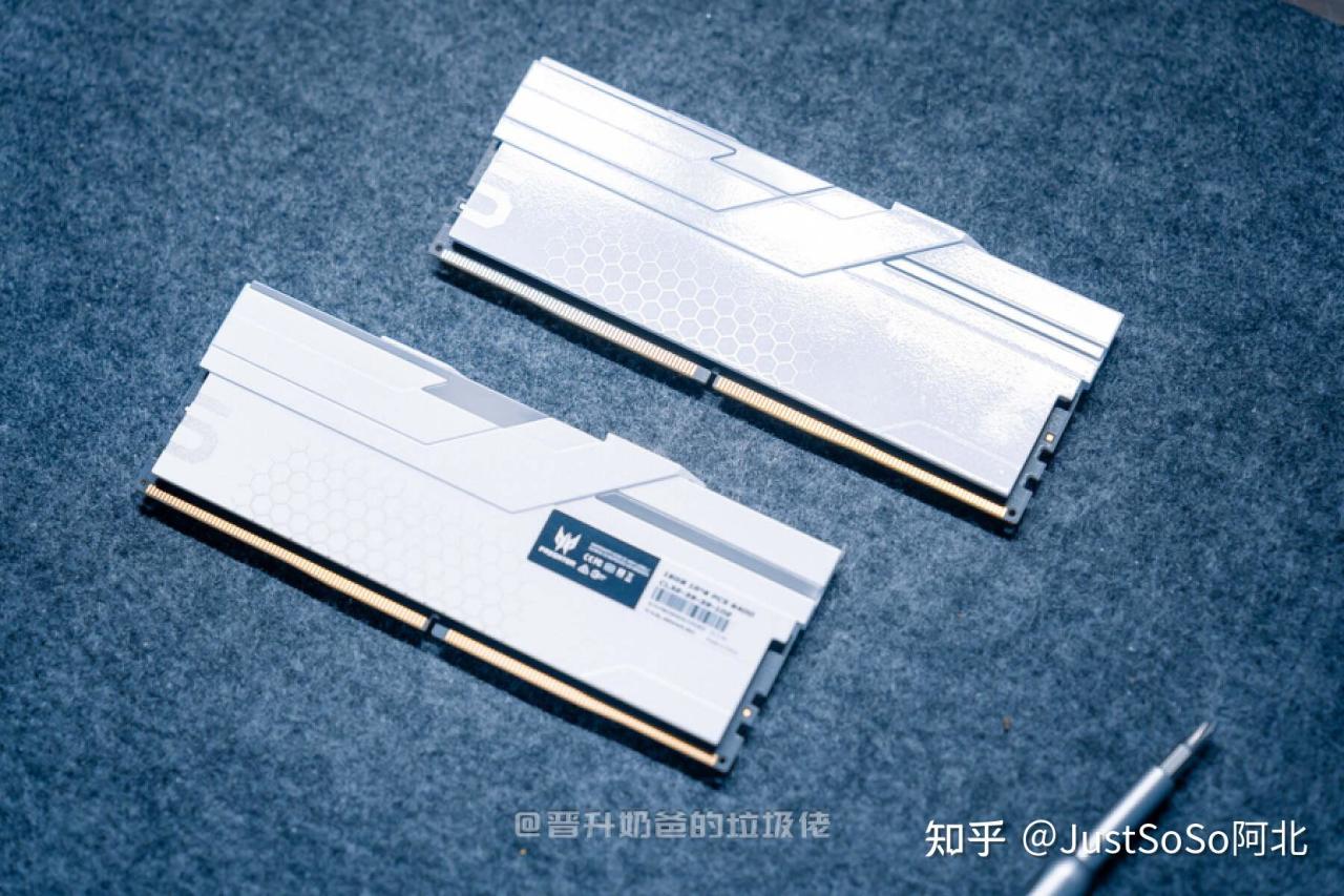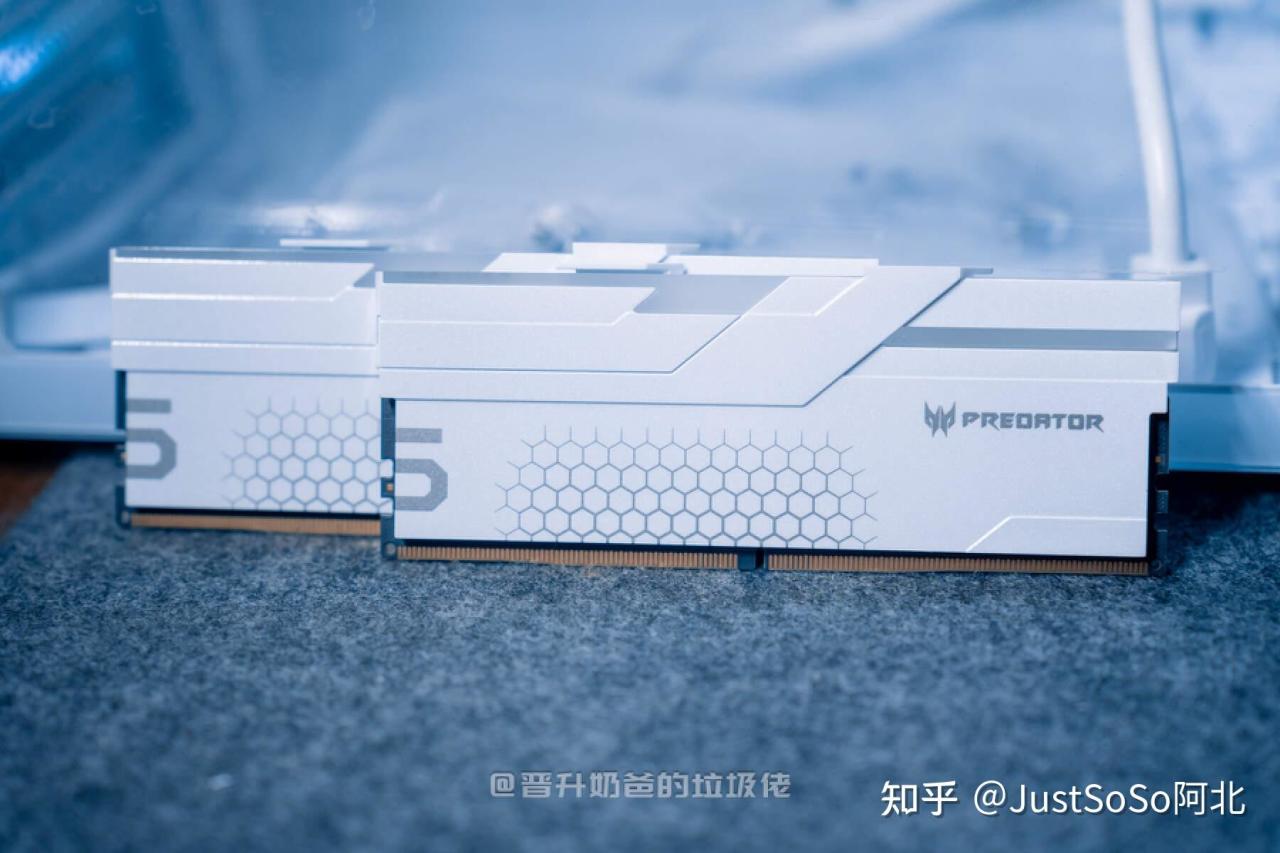 ▼純白色主題裝機自然少不了搭配純白色散熱裝甲的內存,宏碁掠奪者Hermes冰刃系列DDR 5內存採用特挑的ADIE顆粒,在外觀上提供了白、黑、銀三種顏色可以選擇,電競風鮮明的散熱裝甲,可以提供高效的熱傳導性能,拿在手裏沉甸甸的。