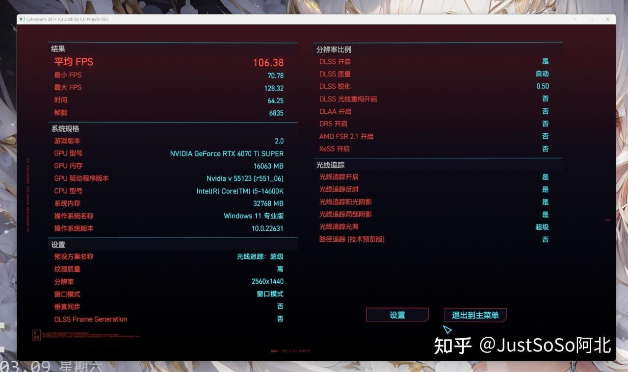 ▼《賽博朋克2077》在2K分辨率下,保持默認畫質,不開啓DLSS 3測試平均幀率106.38