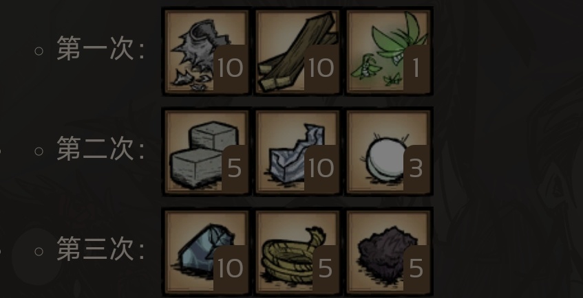 。第二次:5石磚 10大理石 3熒光果