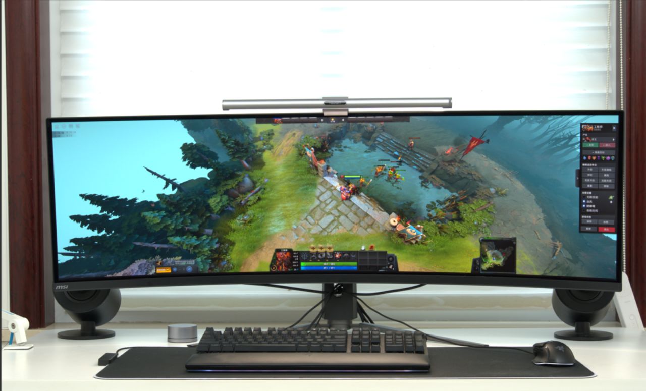 ▲首先,即使是《DOTA2》這種電競遊戲,也是支持32:9超寬顯示的,這點甚至有點物理外掛的意味了,大家可以明顯看出帶魚王屏幕的優勢了,對面塔後與英雄身後的都有更多廣闊的視野,能夠更早的發現敵人的增援與繞後偷襲,降低英雄被Gank情況的發生。