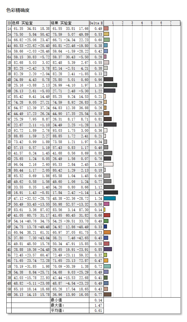 ▲在色彩精準度方面,微星MPG 491CQP QD-OLED顯示器表現得非常之好,通過紅蜘蛛48色測試,其ΔE僅爲0.61,是官方宣傳ΔE(ΔE<2)的三分之一,是非常優秀專業顯示器,最大值也僅爲1.47,不得不說,微星顯示器的色彩調教真的超級棒,不愧大廠之名。