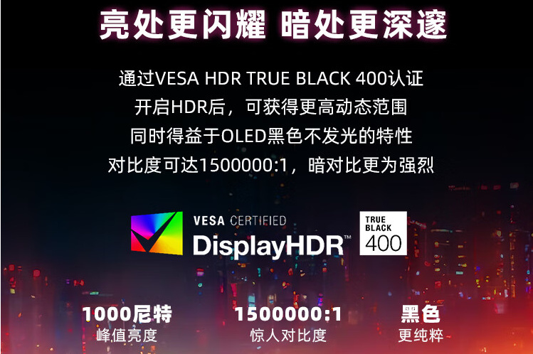 因此,這裏更建議OLED顯示器就老老實實用DisplayHDR TRUEBLACK400享受極致的黑暗與超高對比度比較好,真要玩峯值亮度,還是用miniLED顯示器吧。