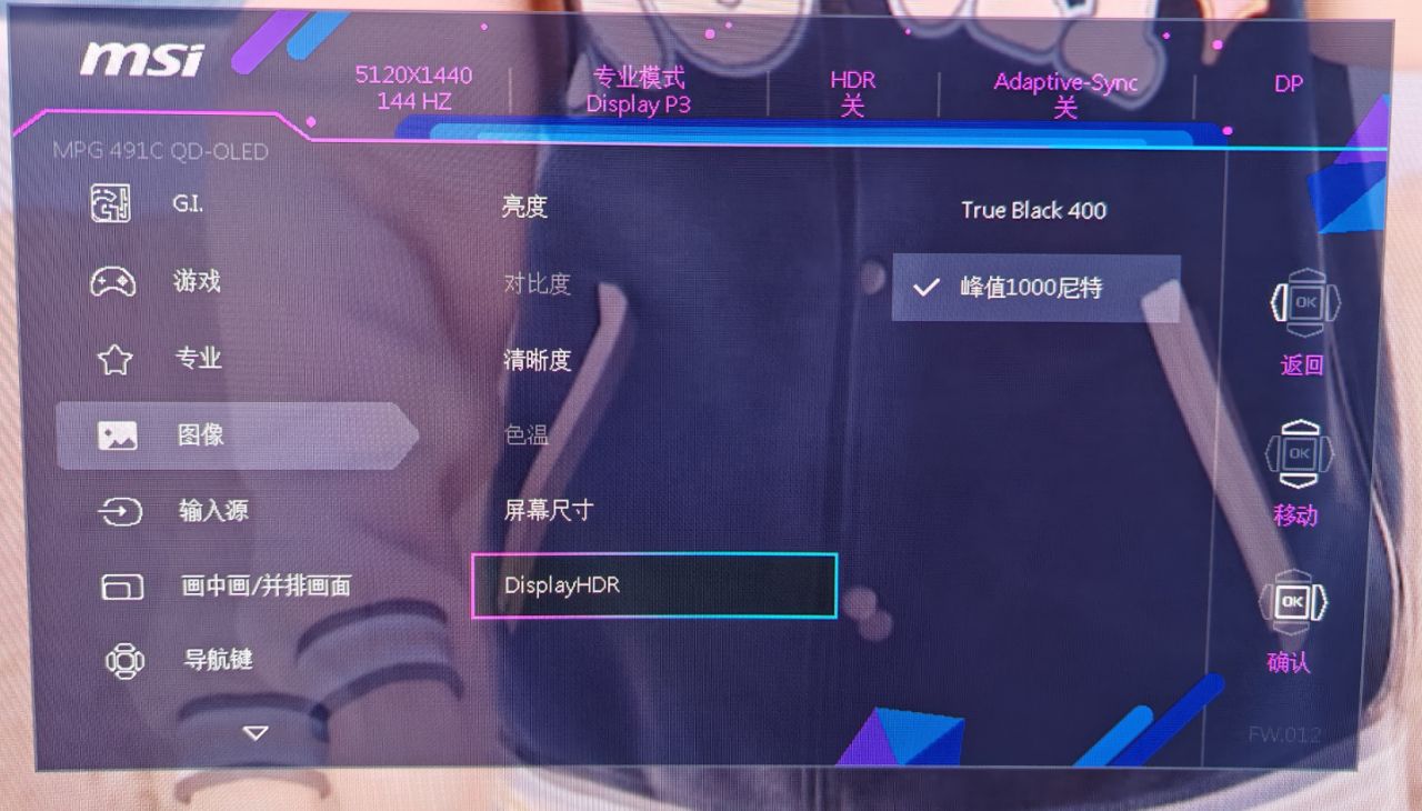 ▲微星MPG 491CQP QD-OLED顯示器共有DisplayHDR TRUEBLACK400與峯值亮度1000nits兩種HDR模式。