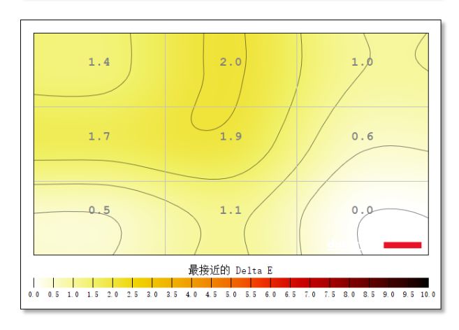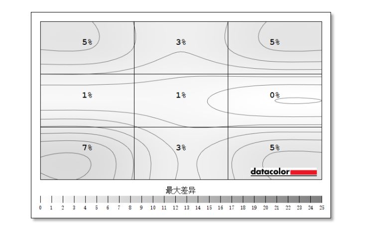 ▲在100%亮度,色彩均勻性方面,最大值僅爲2,在屏幕的正上方,SDR下亮度最大差異也僅爲7%,整體表現非常之好,微星對於QD-OLED屏幕的調教是真的棒。