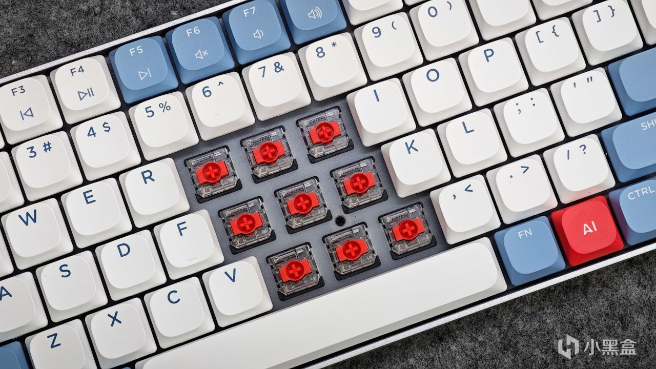 因为采用的是焊接而不是热插拔,没办法展示轴体,只能念一遍轴体的参数了:总行程3.2mm;触发行程1.7mm,光从参数来看会比较像高轴中的银轴参数,但整体的手感其实有不小的差别,在矮轴这么小的尺寸中可以保持和高轴很相似的行程,算得上很不错了。