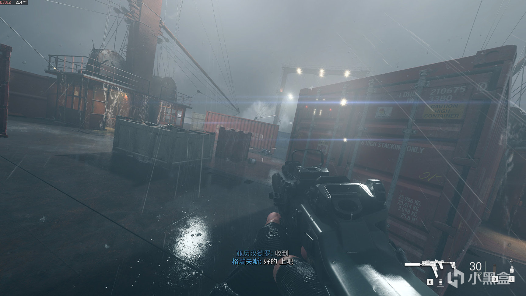 貨輪關卡也稱得上致敬經典吧,這是在復刻《使命召喚4:現代戰爭》中的第一關卡,難度在本作也提升了,因爲除了要注意角落隱蔽的敵人之外,還要躲避貨櫃左右傾斜所帶來的直接傷害,挑戰性是不錯的。