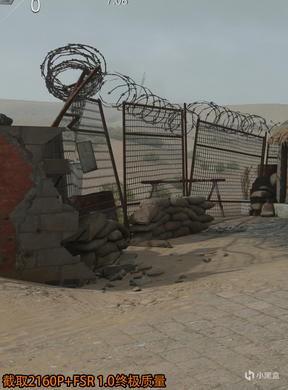 FSR 1.0屬於早期的空間縮放算法,自然成像效果並不是很完美,在以上遠景區域對比中,FSR 1.0畫面裏的鐵欄線條渲染就不到位,給人一種有毛刺和斷裂的感覺,XESS同樣也是如此,而默認的影片SMAA T2X抗鋸齒就完全沒有這種問題存在,只是遠景部分對於FPS遊戲來說,或許留意程度並不高,實在覺得彆扭,可以等待一手FSR 2.0更新支持。