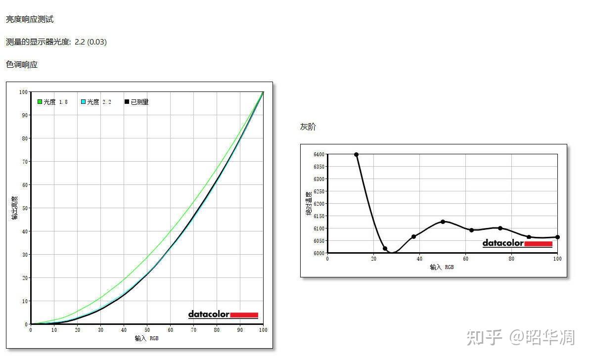 ▼色调响应上,显示器测量出来的曲线和光度 2.2 标准曲线近乎重合,当伽马曲线越接近标准曲线,那么显示器的色彩过渡就会越平滑。