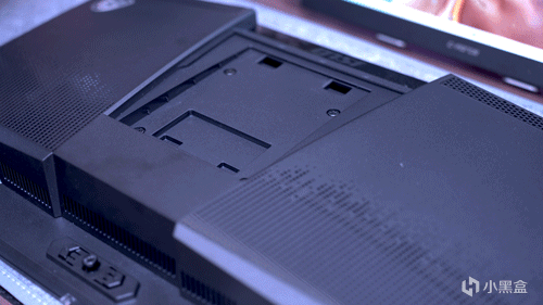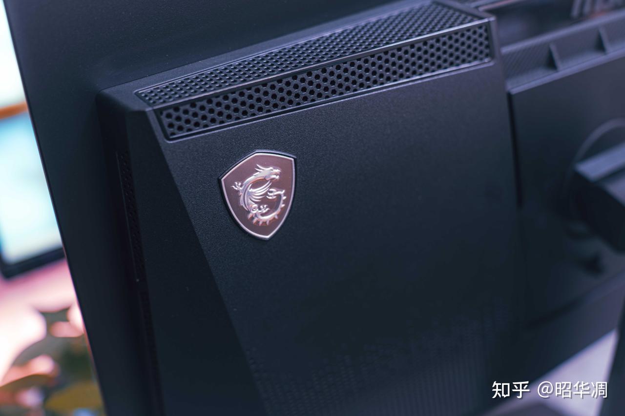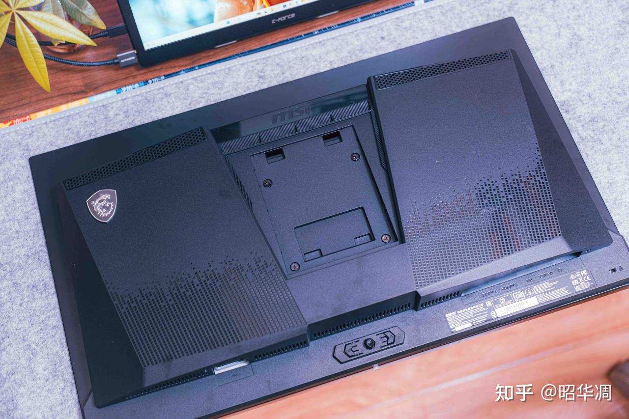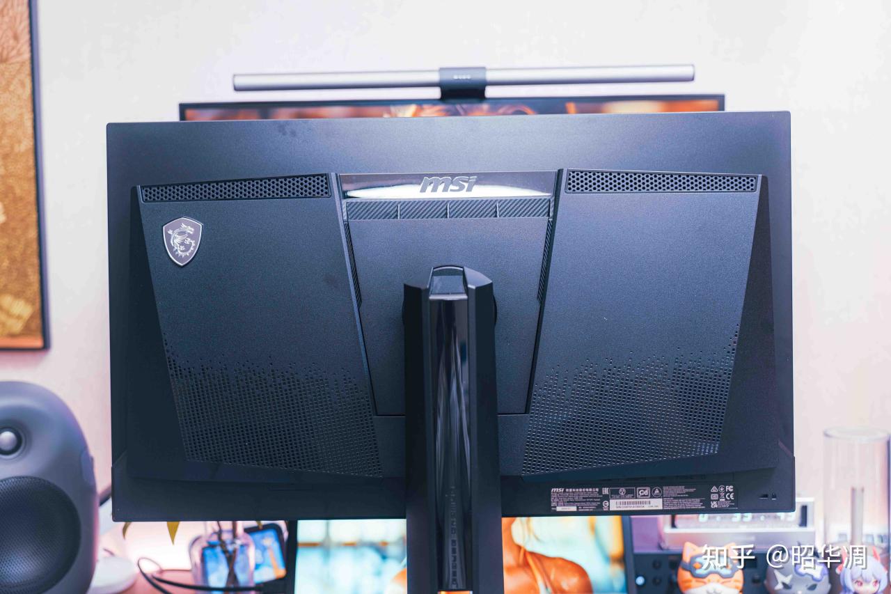 ▼背面则是“背包”式结构,隆起的区域主要是容纳电路板、电源等零件的所在。风格依旧是微星棱角分明的冷峻风,高光工艺装饰条,拉丝背板,碳纤维表面,细节处理得相当到位。另外考虑到 OLED 发热比普通 LED 显示器大,微星特别定制了石墨烯被动散热,配合像素位移、像素刷新、自动亮度等多项技术来延长面板使用寿命。