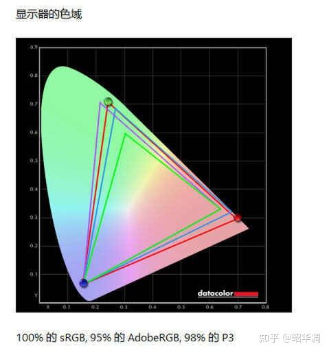 ▼经过红蜘蛛测试,显示器在默认模式下达到了 100% sRGB 色域覆盖,这个数据已经超过了红蜘蛛的最大测试标准。而 DCI- P3 和 AdobeRGB 则分别为 98% 和 95%,色域覆盖相当出色。