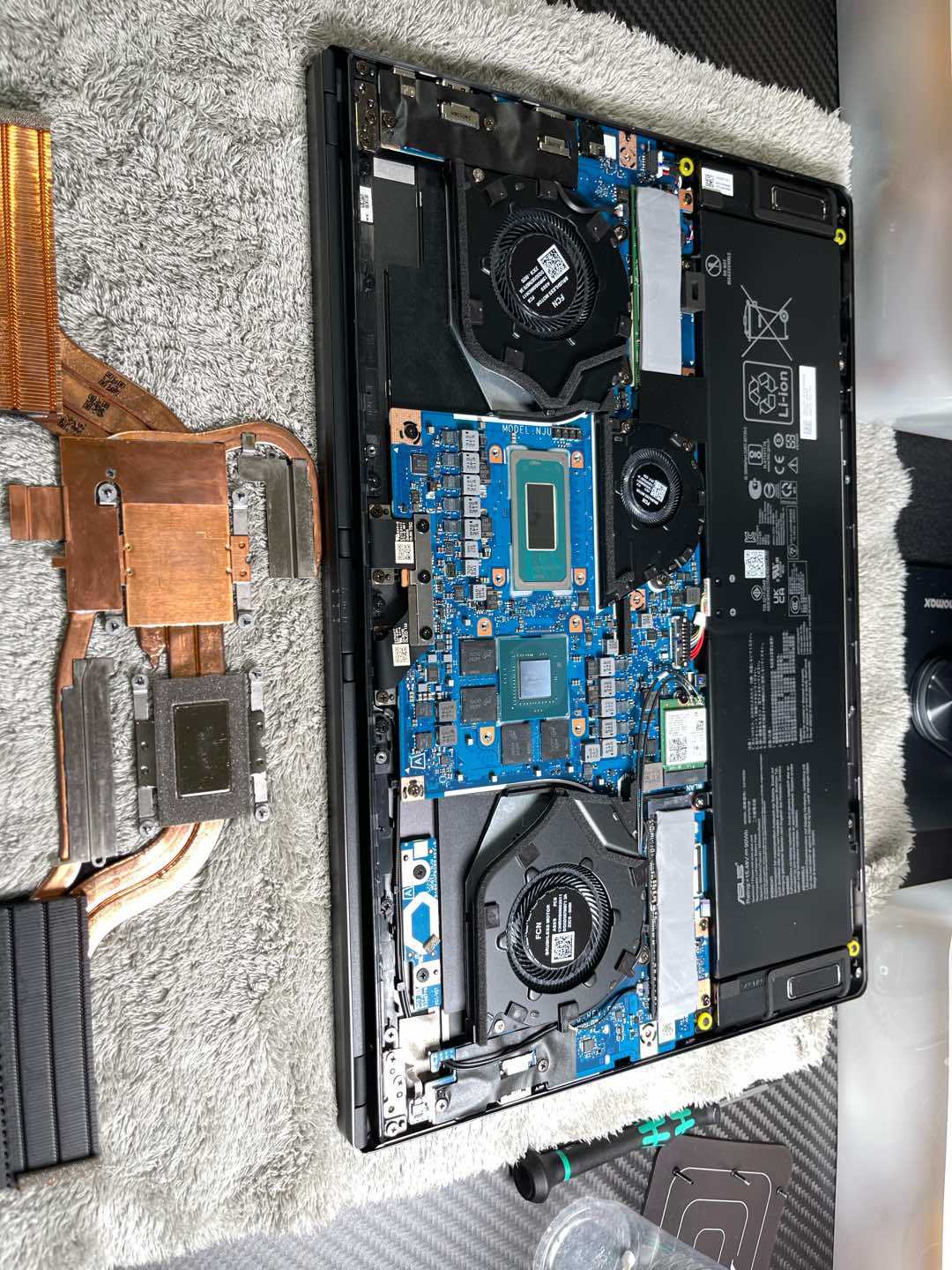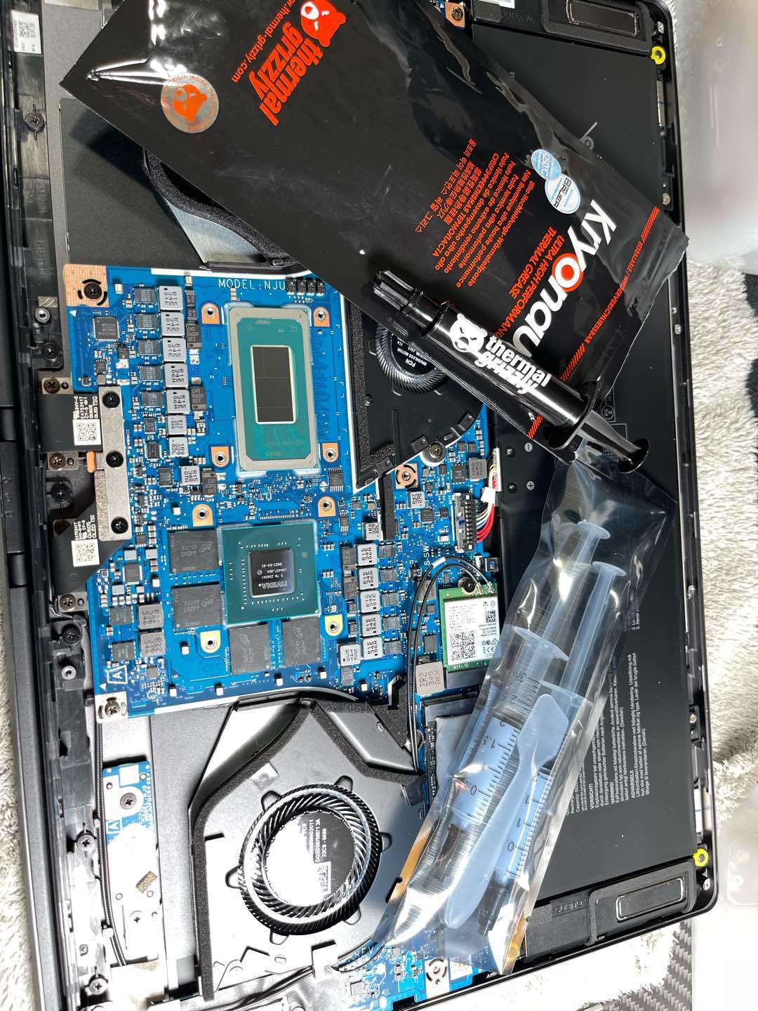 我就知道,果然,牛逼!牛逼!這才一個月,筆記本買來一直放在一個地方沒動過,而且本子一直平放,液金已經快完破殼而出了,核心部位甚至有個空泡,這塊如果不及時清理估計離碳化不遠了