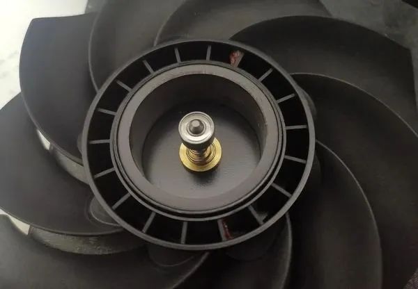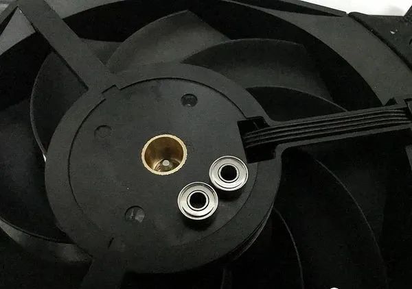 与常见的工业风扇不同,在卡扣与滚珠轴承之间,利民加入了一层塑料垫片。