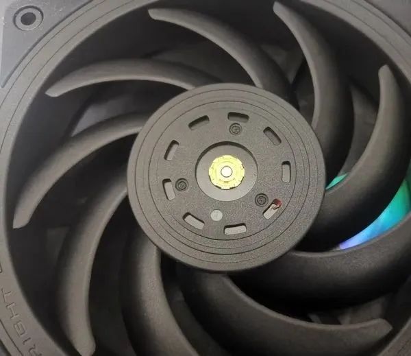 不仅扇叶外部拥有动平衡胶点,就像真正的“伺服级”工业风扇那样,TL-B12E也在转子内部进行了动平衡点胶。想来这便是利民所说的“三次元动平衡”了。
