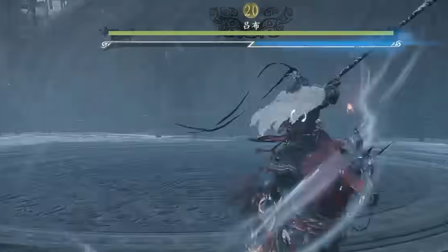 开局我们先抵挡吕布在马上对我们的挥斩。