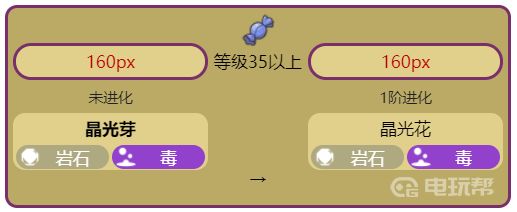 宝可梦:朱/紫中晶光花由晶光芽进化而来的,晶光芽比较喜欢栖息在洞窟的墙壁上,所以小伙伴们可以前往洞窟中寻找晶光芽。