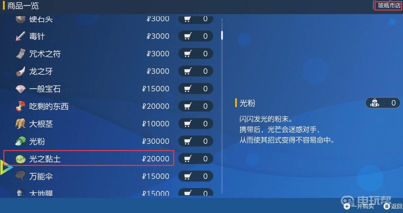 光之黏土在玻瓶市信使鳥商店購買獲得,信使鳥商店的位置如下圖所示。
