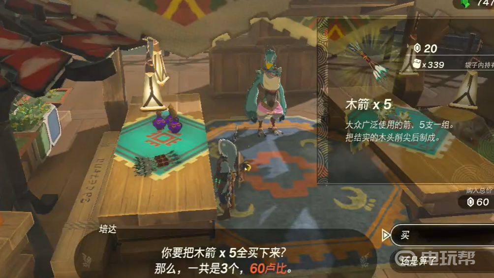 在《塞尔达传说:王国之泪》里购买道具,在驿站住宿以及升级装备都需要花费金钱。