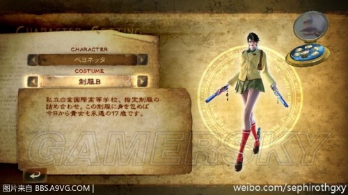 在游戏一周目通关后会出现一个商店,在这里你可以购买首饰盒,然后你就可以购买服装了,每种10W,三种颜色。获取金币可以在有个叫魔女狩猎的章节绝望眼神刷高难度的魔女狩猎,四场战斗收入有