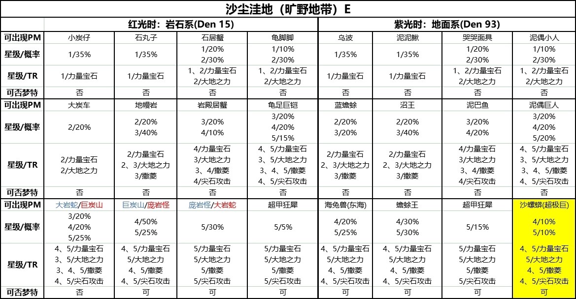 《寶可夢 劍》曠野地帶全巢穴寶可夢出現率與技能記錄掉率一覽