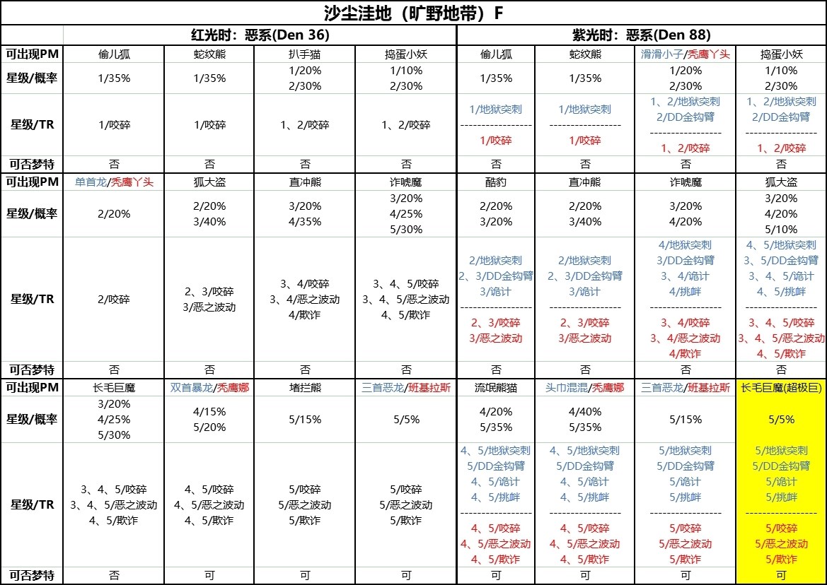寶可夢出現率及招式記錄(TR)掉落幾率表