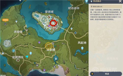 2、然后点击蒙德城地图中间的蓝色菱形图标,点击之后会出现一个传送功能的窗口。