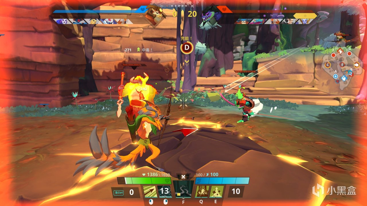 (3)常規按鍵包括左鍵的攻擊、右鍵的特色技能(比如狙擊手的開鏡、弓手的上毒等等)、跳躍和衝刺,以及圍繞着跑酷能力的體力系統。
