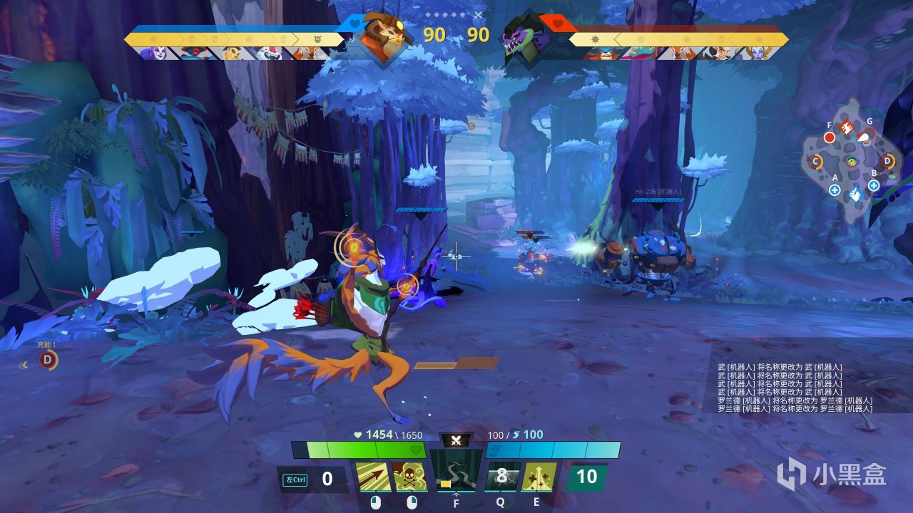 (1)技能只有Q\E\F,即兩個小技能配合一個大招