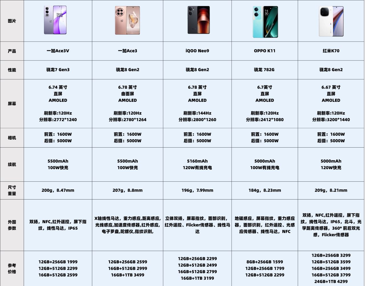 爲了方便大家對比每款手機的性能參數,我做了一張詳細的參數列表: