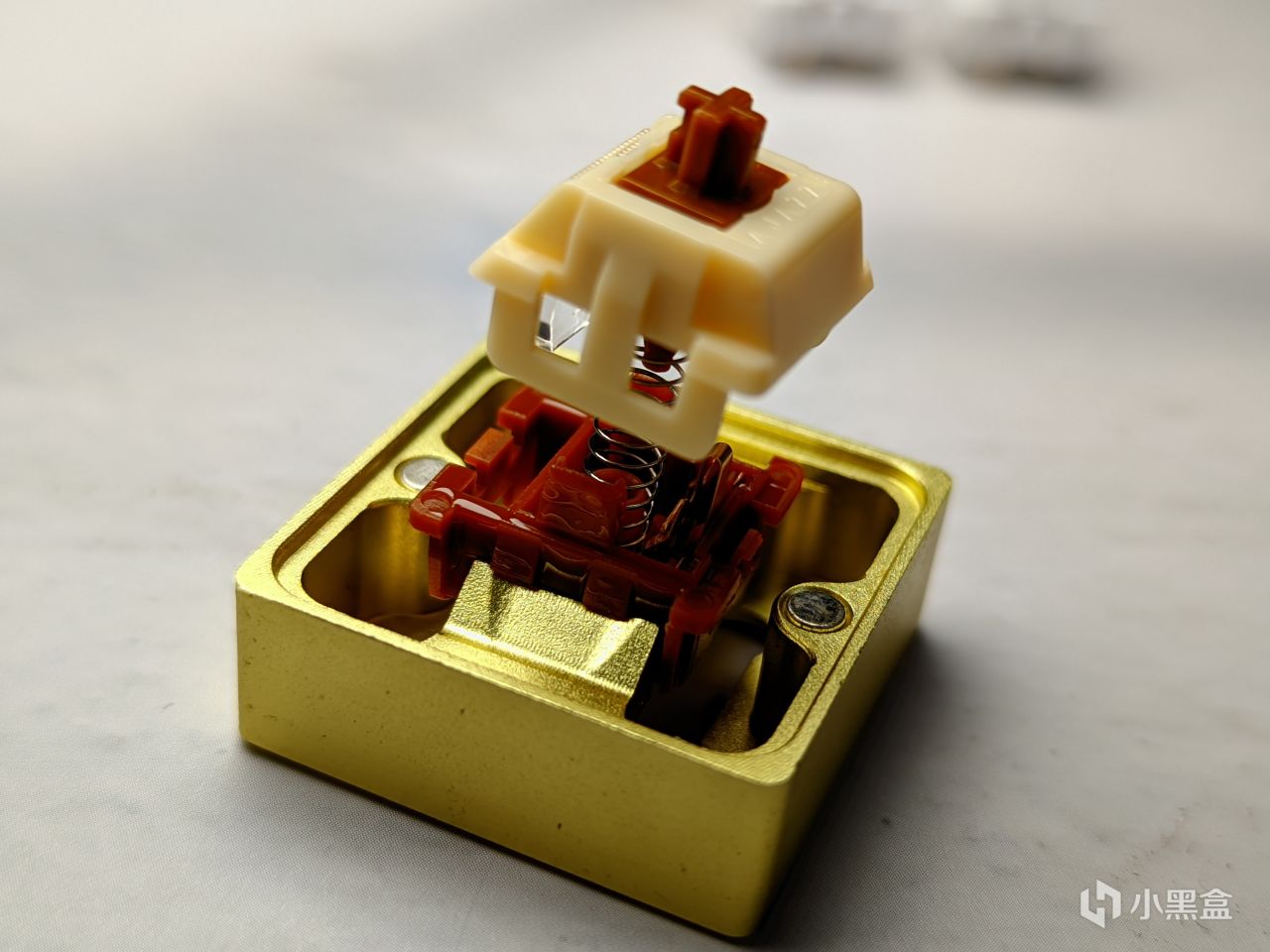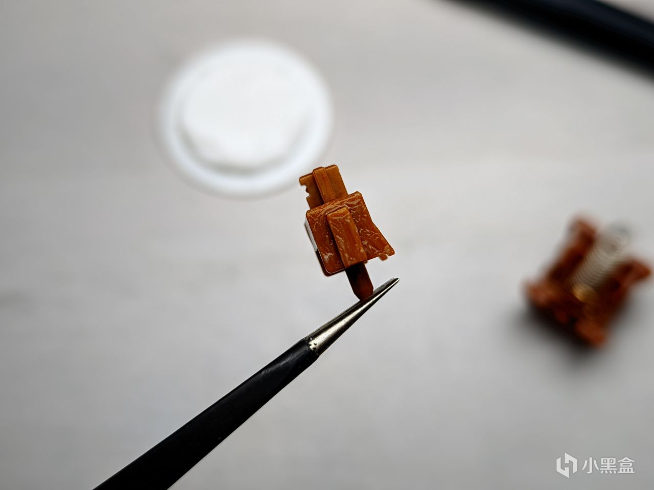 美拉德軸在實際感受中發現,僅潤滑軸心和底殼表現只能說差強人意,所以如果你也遇到這種情況,你可以試着潤滑一下上蓋的接觸面,也就是圖上微微發光的凹槽處,這個地方薄凃一層潤滑脂可能會有很大的改善。