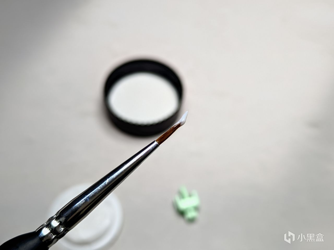 然後就是潤軸的部分了,首先需要將潤軸筆蘸上一些潤滑脂,這邊需要注意的是,潤滑脂只需要浸滿毛尖就行,不要將整個筆頭都包裹住,這屬於致死量了,大概率會直接潤啞軸體,潤軸主要是少量多次慢慢潤。