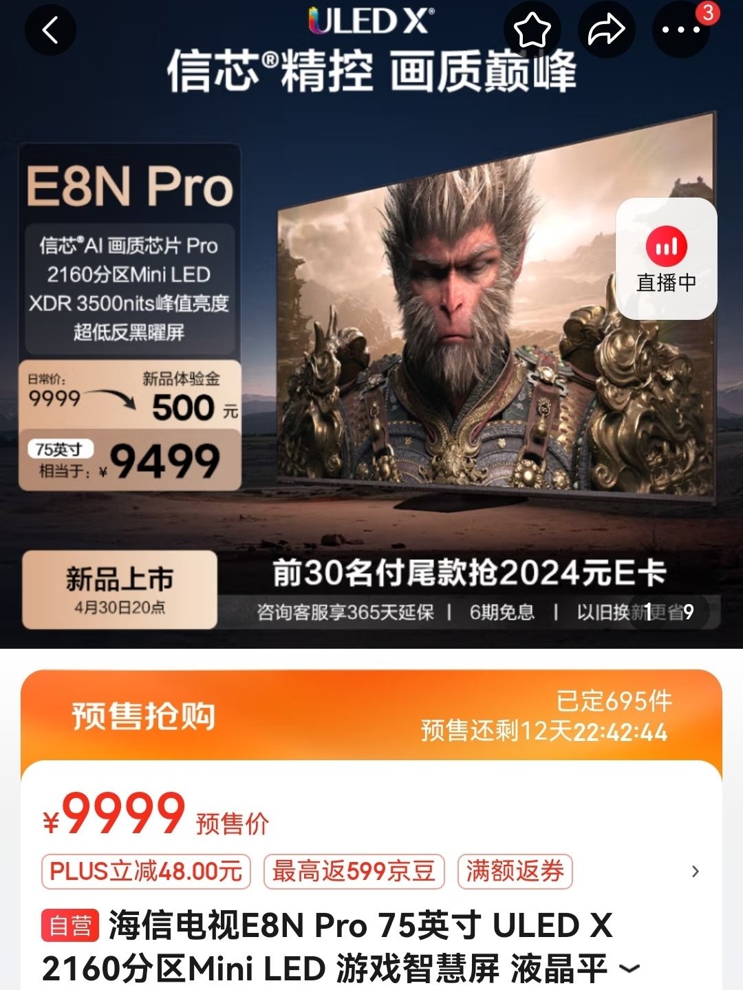 #用世界品質,講中國故事 #黑神話悟空顯示CP 正式官宣 #海信電視E8N 系列,支持你的熱愛