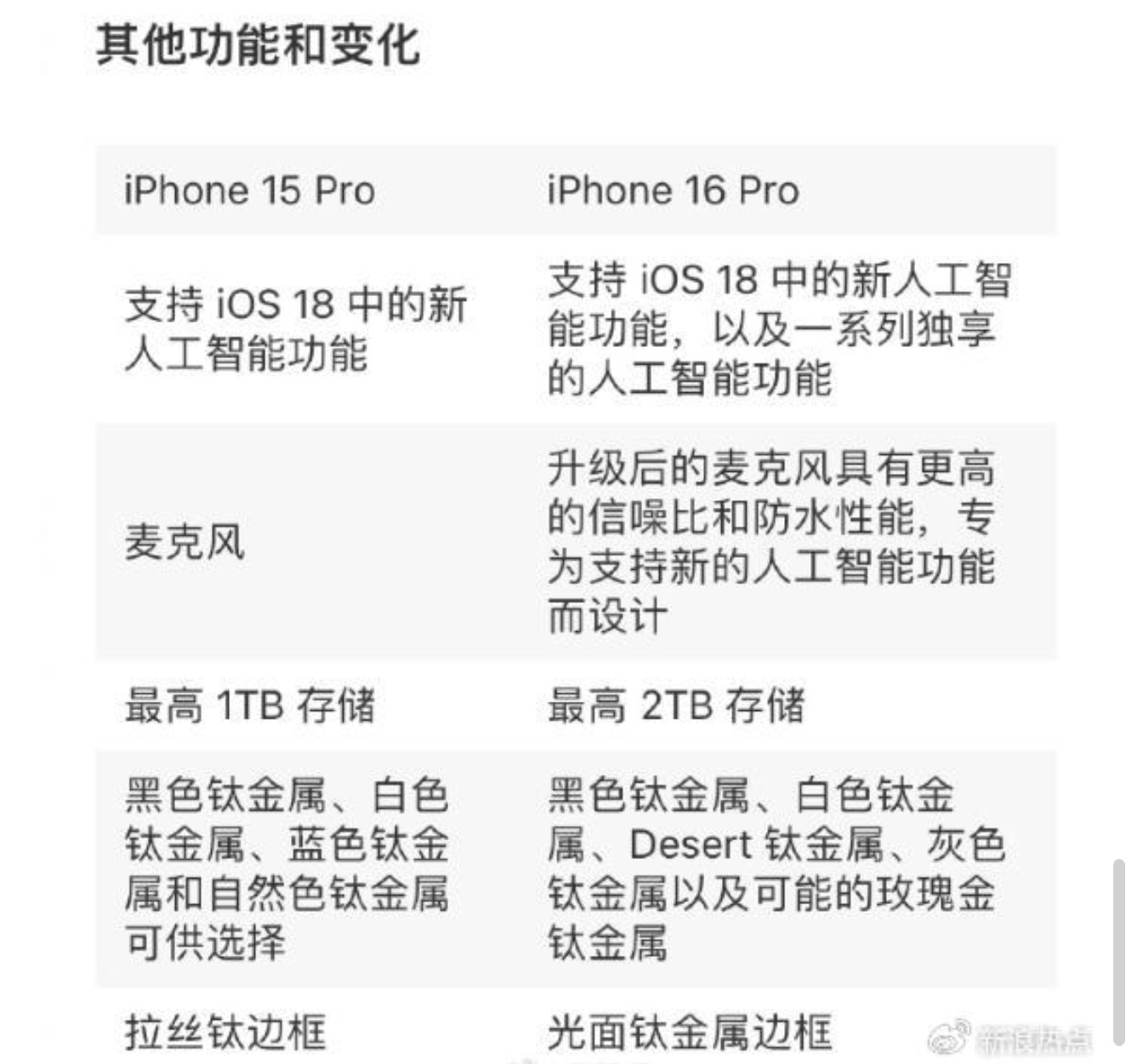 科技媒體 MacRumors 近日也發佈博文,彙總了關於蘋果 iPhone 16 Pro 和 iPhone 16 Pro Max 兩款機型的爆料內容,表示該機型今年會有 30 處改進和優化。