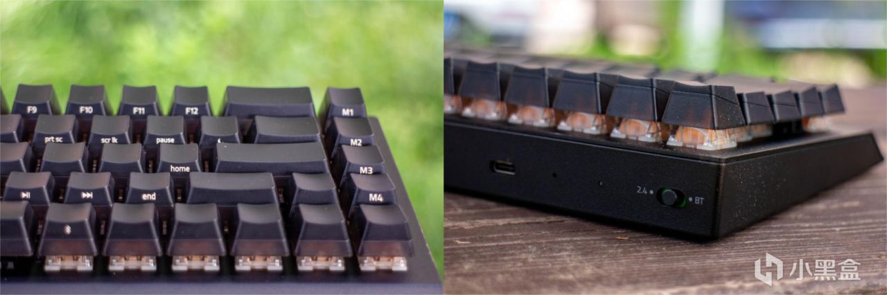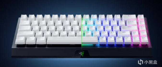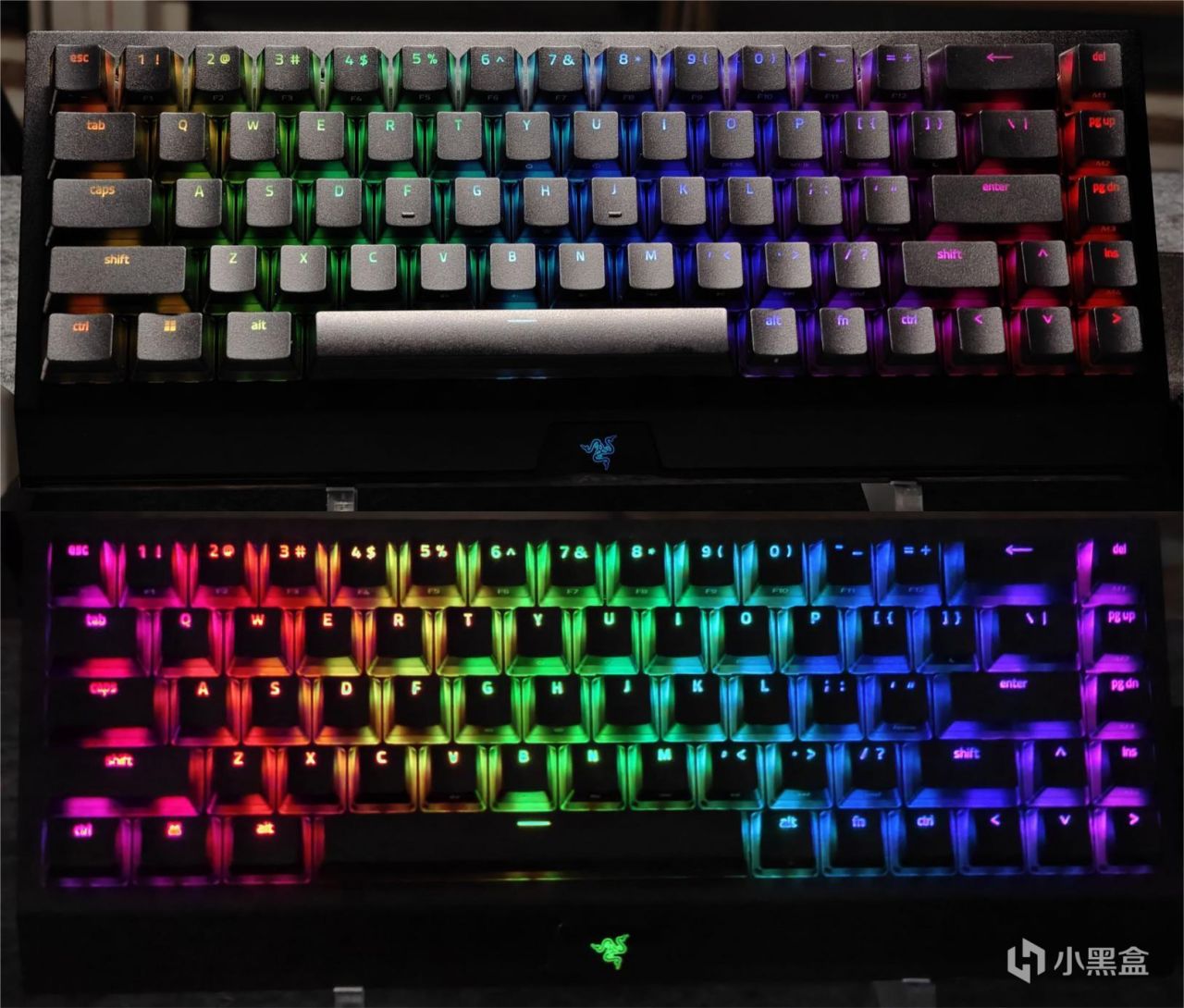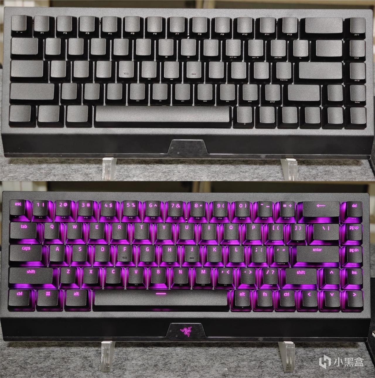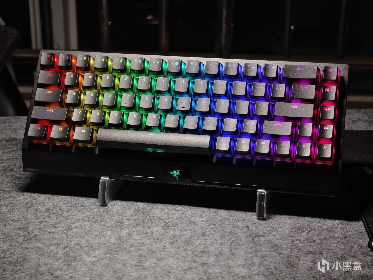 看,這裏那個支持RGB的雷蛇LOGO回來了。對比之前的黑寡婦V4 75配列,好看多了。