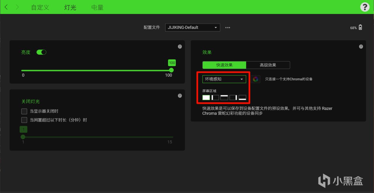 雷雲有個很好玩的功能:環境感知顧名思義,即時檢測屏幕顏色分佈並映射到鍵盤上