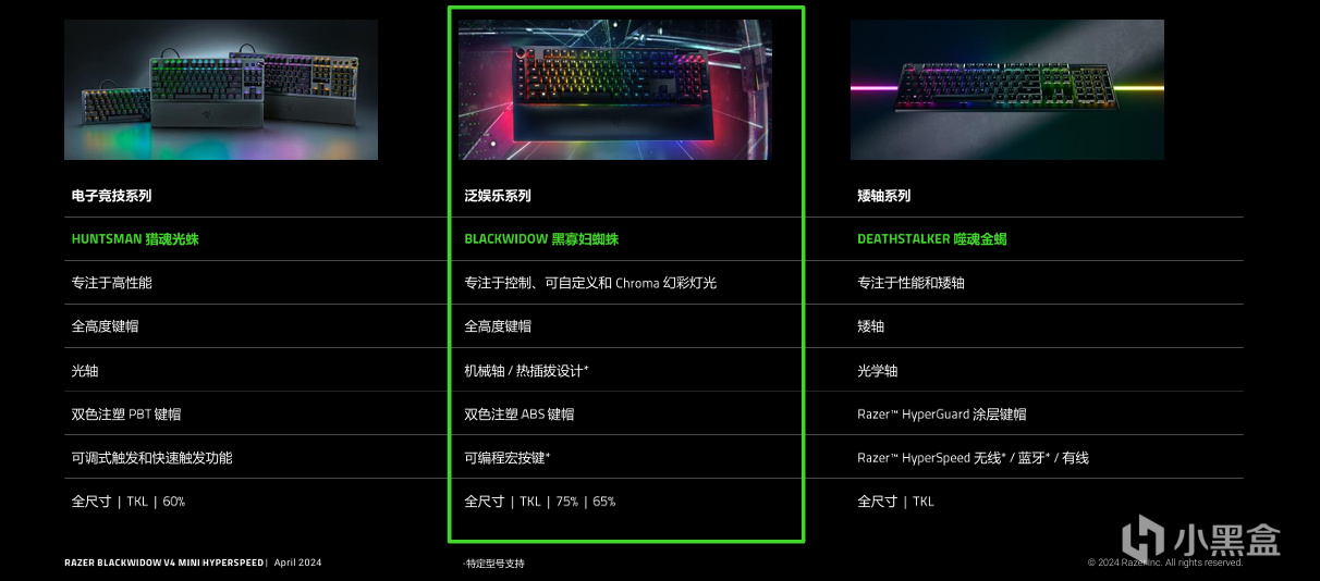 沒有完全像獵魂光蛛一樣犧牲手感而採用全光軸,而是仍採用機械軸保證遊戲體驗的同時,保留有可編程按鍵+熱插拔設計+Chroma幻彩燈光,這些“可玩,可自定義”的功能。
