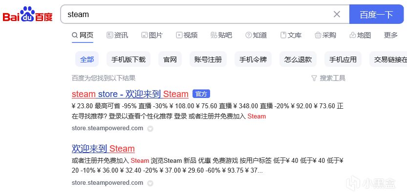 但從目前的情況來看,遊戲管家之類的騙局已經基本不存在了,在搜索引擎中輸入Steam,彈出的第一個便是正兒八經的Steam官網(可能是大夥不斷科普,讓Steam遊戲管家不買推廣了?),但讓人有些沒想到的是,在解決了下載、註冊Steam的開局難題之後,在買遊戲上又有了新的騙局。