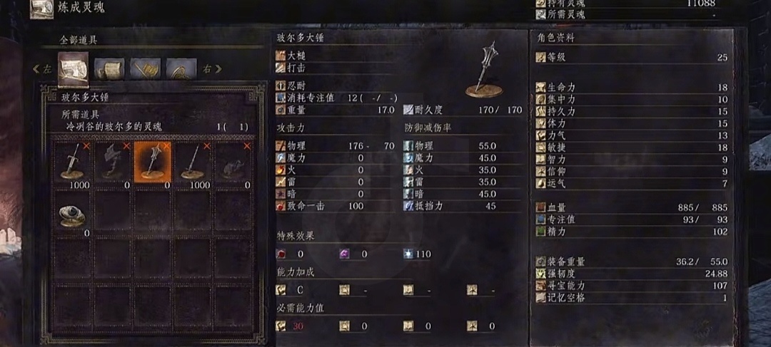 由於人物屬性太低,黑騎士戟根本拿不起來,這裏推薦使用黑魂1“刷魂大法”,或者將一路撿到的魂全部捏了,再刷點魂也可以。