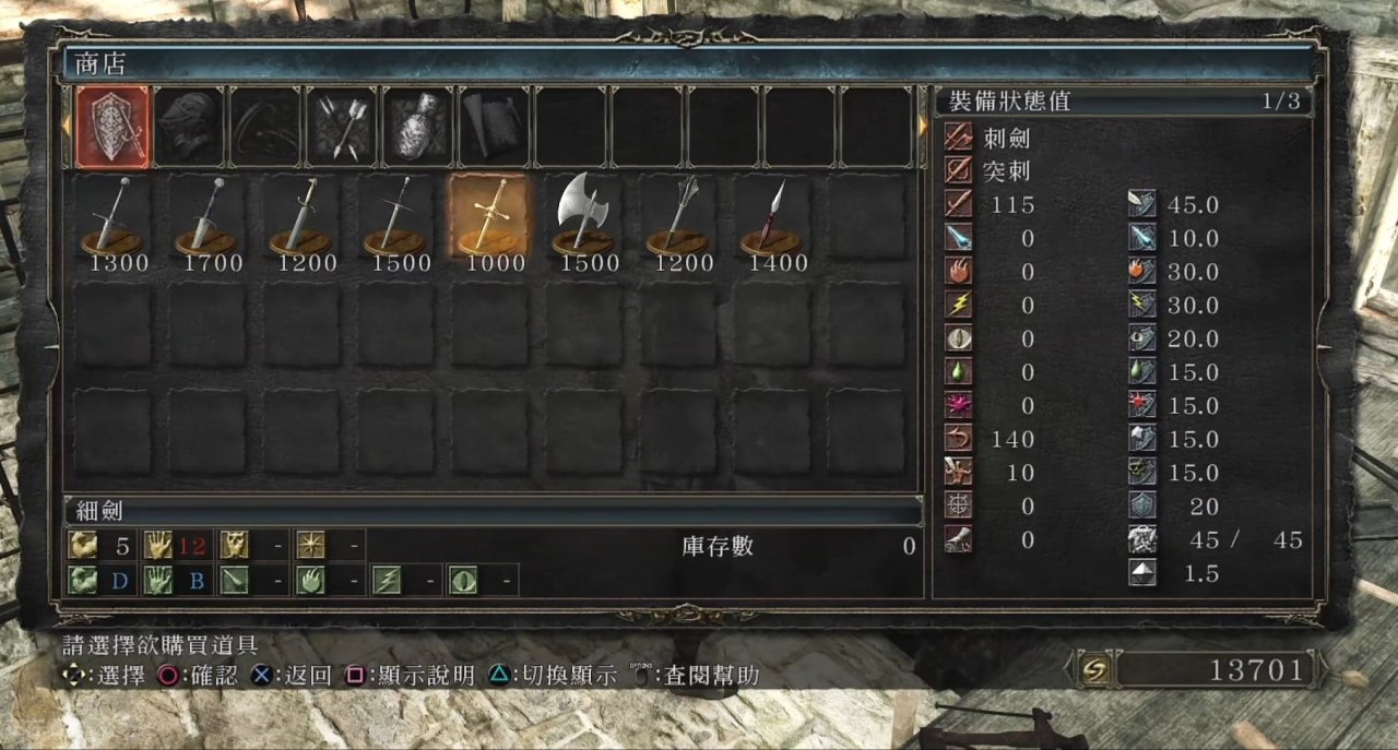 注:武器平衡系統做的可以,這裏隨便一把武器都可以通關,建議選擇“細劍”,因爲後期進dlc可以獲取魂2畢業武器“冰之刺劍”,算是爲冰刺的使用做鋪墊。