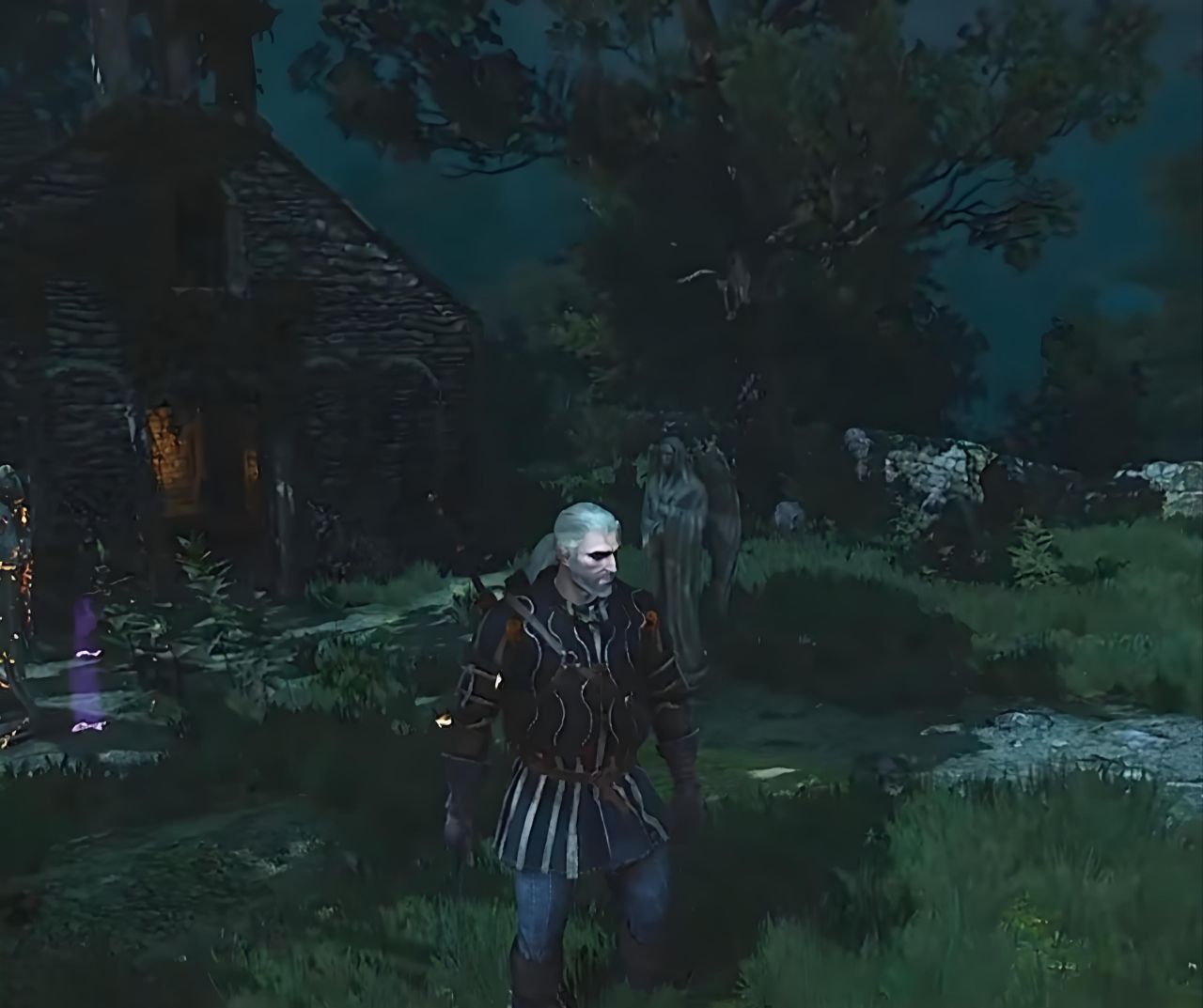 進去轉一圈再出來之後,就會發現塑像挪動了位置,而且還面向傑洛特。加上詭異的bgm讓人不寒而慄。