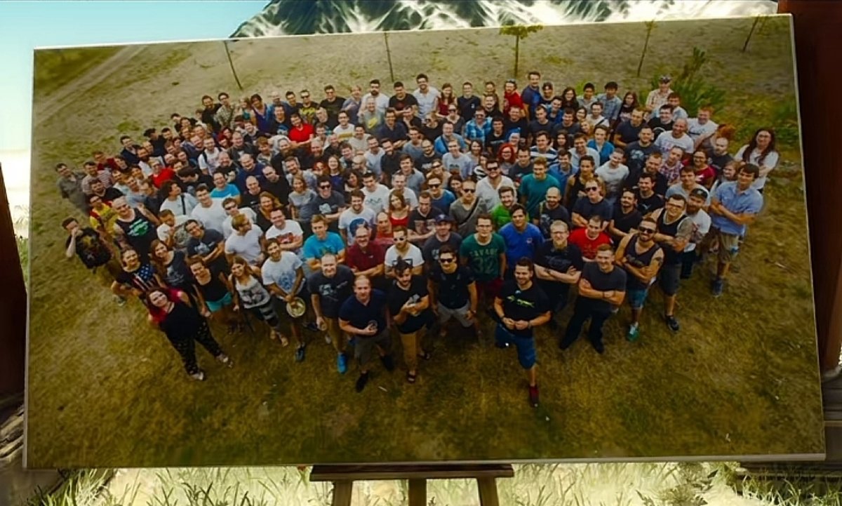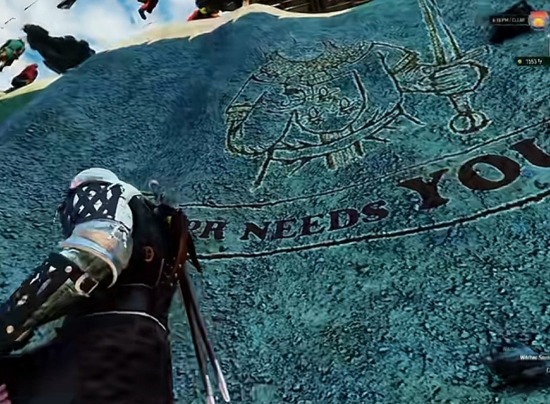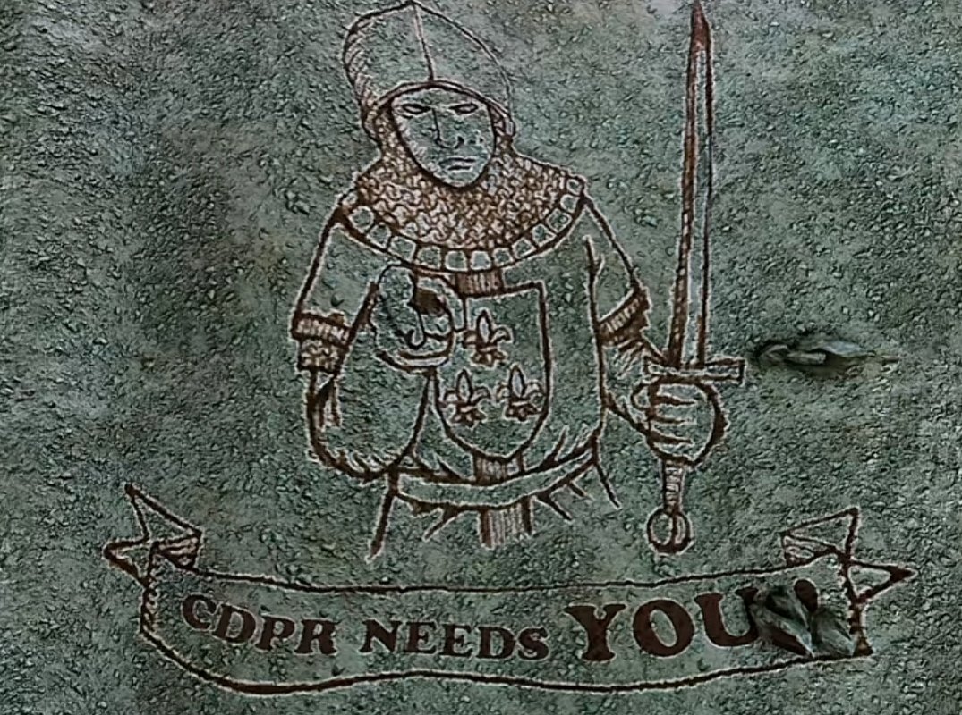 能看到一堵牆,牆上寫着“CDPR NEEDS YOU”