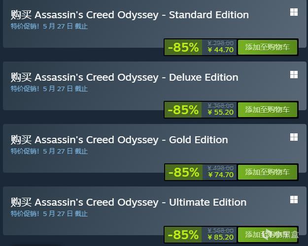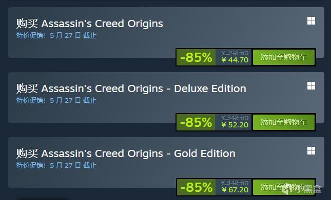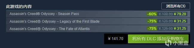 《刺客信條》Steam部分作品部分版本以及部分DLC新史低