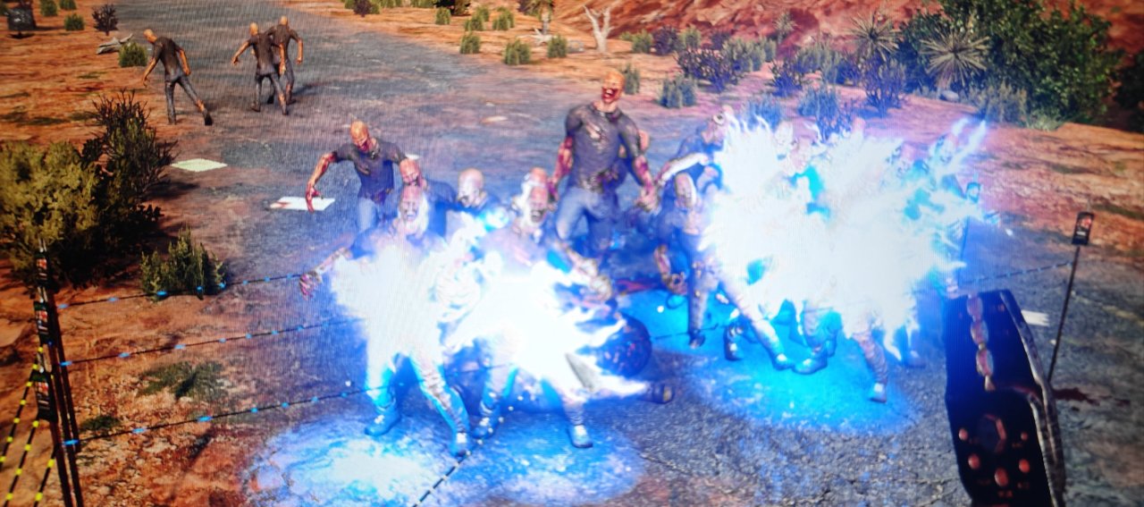 電圍欄柱兩個一連,接上電源,從中間過的殭屍便會被電擊(自己也會)。但是傷害不是主要部分,當電圍欄柱多的時候,殭屍根本走不動,任人宰割。